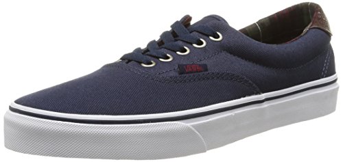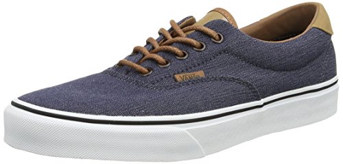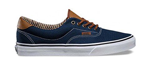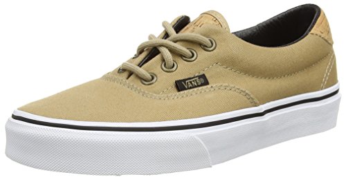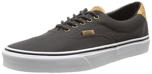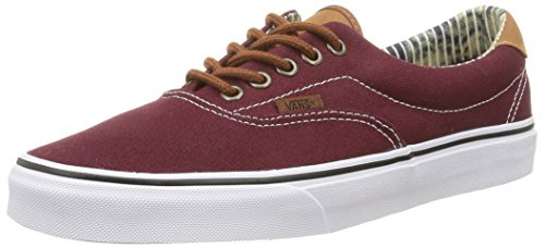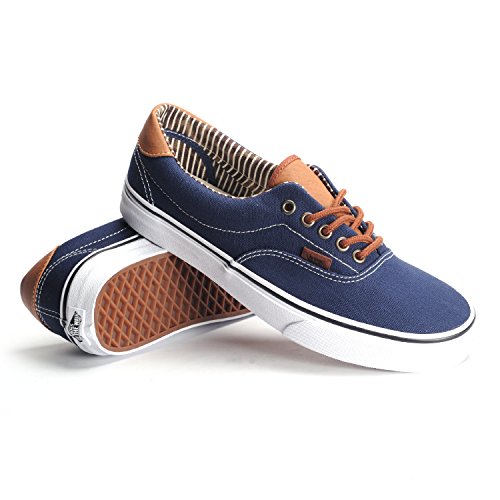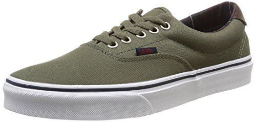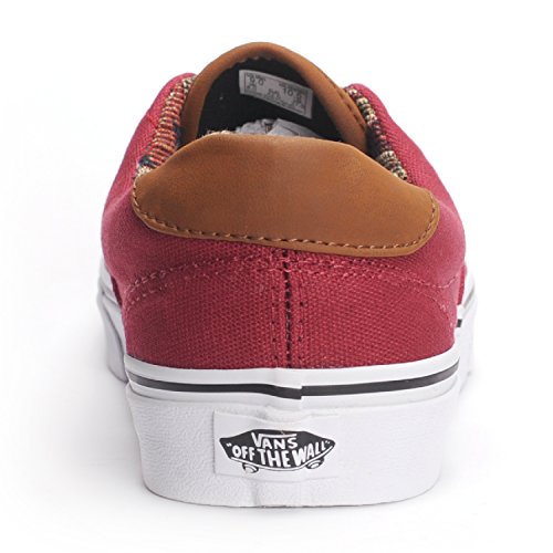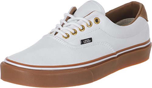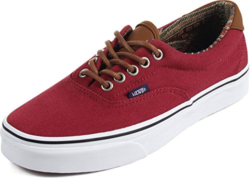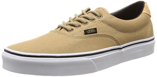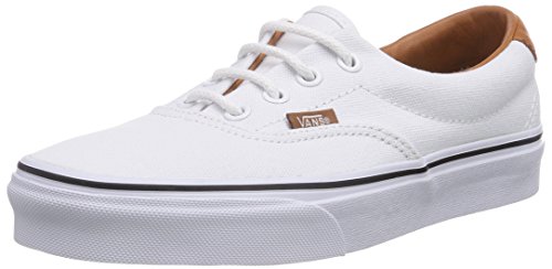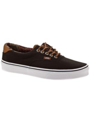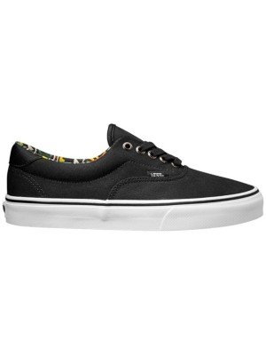 The C&L Era 59, a low top lace-up skate shoe, features sturdy double-stitched canvas and leather uppers with geo weave interior detailing, metal eyelets, signature waffle outsoles, and padded collars for support and flexibility.