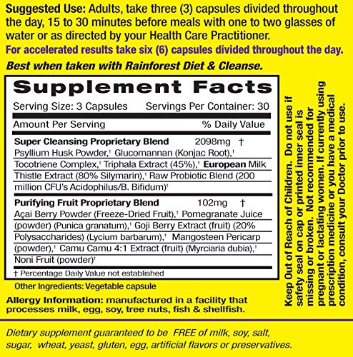 Rainforest - Super Cleanse - with Konjac Root, Triphala, European Milk Thistle & Psyllium Husk - 90 Vegetable Capsules