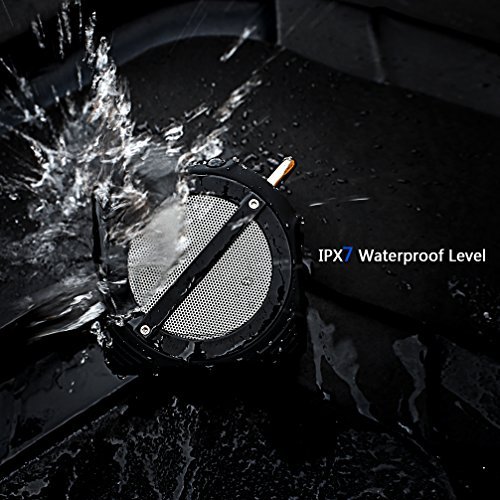 WATERPROOF Surrounded by the environmental friendly rubber cover the fantastic IPX7 waterproof bluetooth speaker works great when enjoying outdoor activities beach, seaside, shower room and even in the swimming pool