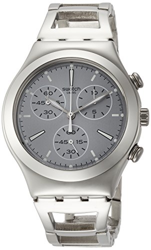 Swatch Unisex Silverli 40mm Steel Bracelet & Case Swiss Quartz Grey Dial Analog Watch YCS112G