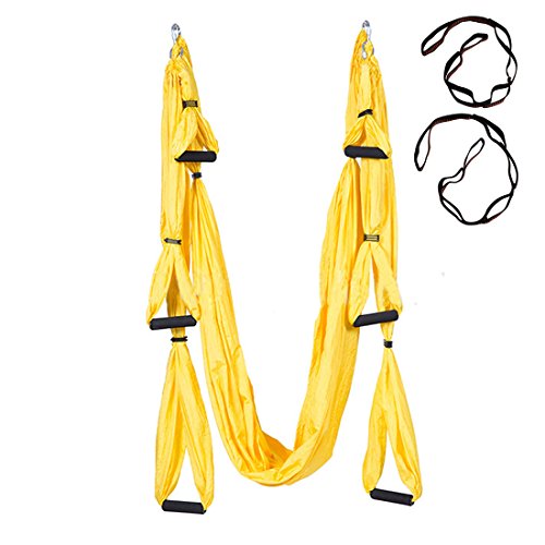 Studio : Ningbo?shuyi?outdooor?products?Co.Ltd Publisher : Ningbo?shuyi?outdooor?products?Co.Ltd Binding : Misc. Product Description The Hi Suyi Anti-Gravity Aerial Yoga Hammock Swing,has a special design, it can be detachable,include hammock and a set of training belt with 3 foam. You can use the main hammock, also can use them together. The Aerial Yoga Silks is a new yoga exercise,Improving blood circulation, decompress your spine, relax yourself, relaxes your muscles, relieves backache and joint pain,and better body image etc. Package include: 1x Yoga Silks(with steel loop) 2x Yoga Swing Extension Straps 2x Steel hook 6x Foam handle Not include:2 hooks with fixed disk on the ceiling,additional purchases are required! Installation: 1. You need install two hooks with fixed disk on the ceiling,and install more than 4 bolts to fix disk(maybe you need to buy it,not include in package), two hooks spaced 50-80 cm better. Such as the need to install hooks on the ceiling perforated ceiling over the ceiling is not suitable for installation. (Installation must be able to load in a fixed object) 2. If the ceiling is high, and needs to extend the zone, extended with a length of 70 cm, anti-gravity yoga length from 1.4 to 1.5 meters, so it also can be used with high ceilings. 3. The anti-gravity yoga mountaineering ends with the end of the hook to extend enough