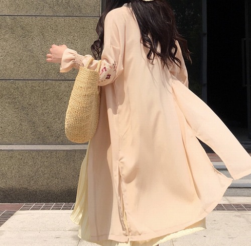 サイズ(単位:約cm)【F】 着丈約96 バスト約104 肩幅約58 袖丈約49