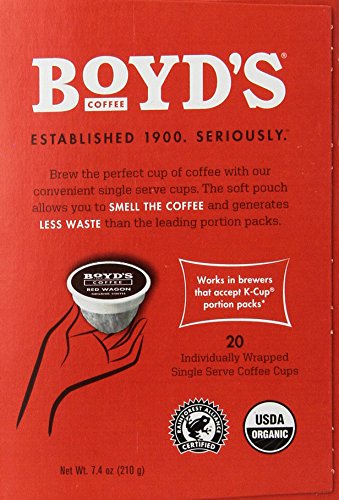 Boyd's Coffee Single Cup Coffee, Organic Red Wagon, 20 Count