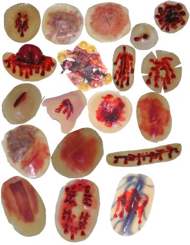 -. Feature : Set Nr. 2 / Für die realistische Simulation von Verletzungen; Wunden können im Handumdrehen aufgeklebt werden / Perfekt geeignet für Erste-Hilfe-Trainer / Einfach zu handhaben; günstig; wiederverwendbare Wundenimitation / Wird zur Simulation von lebensechten Wunden beim Erste-Hilfe-Training verwendet