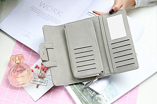 -. Title : Lady's Fashion Clutch Purse or Long Wallet; Three-fold with snap; Holder for Cards, Currency and Phone
