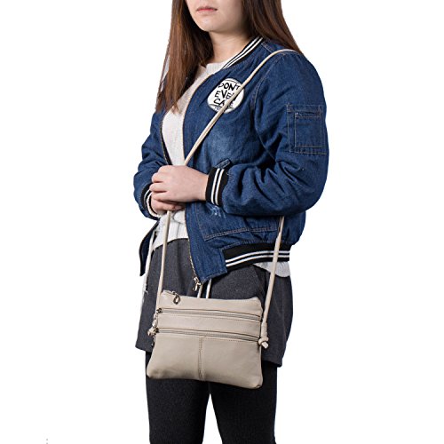 Faux Leather Small Crossbody Shoulder Bag Multi Zipper Mini Casual Purse for Women Girl