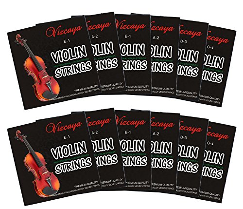 Vizcaya 2 Full Sets Violin String (G-D-A-E , G-D-A-E) for 4/4 - 3/4 Size Beginner,Student Violin Replacement ,Extra 4 string(E1,A2,E1,A2)