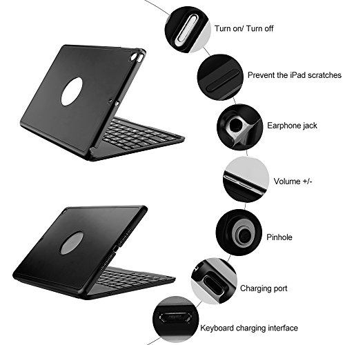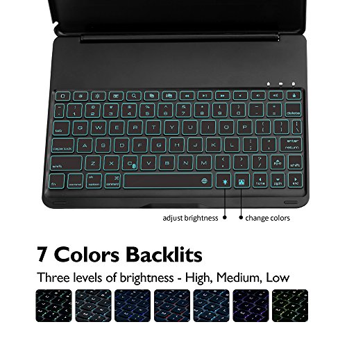 7 Colors Backlit Keyboard: 7 light color options(red/white/yellow/green/cyan/blue/purple), different brightness control, makes your New iPad/iPad Air keyboard works and looks great in dark, provide a different visual enjoyment for you