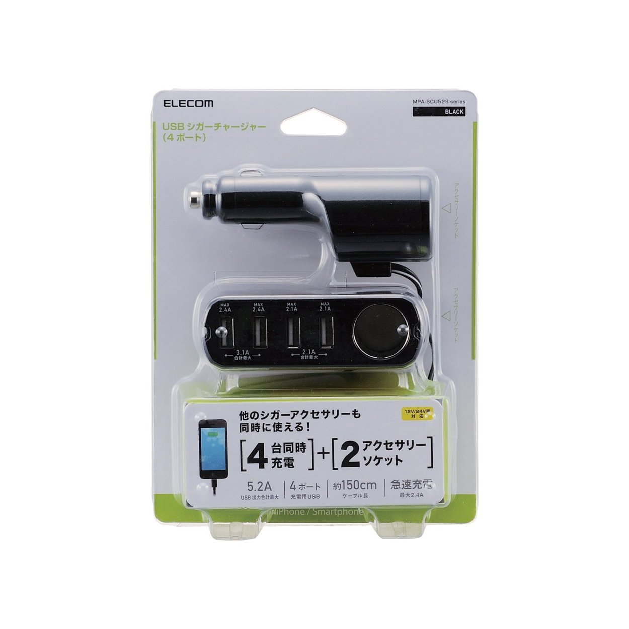 ELECOM Elecom iPhone6 iPhone6 Plus compatible (requires Apple genuine Cable / Lightning USB cable) (Apple genuine Cable / Lightning USB cable required) cigar socket distributor USB4 port + cigar socke