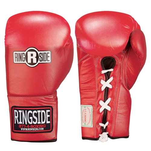 Studio : Ringside Publisher : Ringside Binding : Sports Product Description Ringside Amateur competition gloves feature a 4-layer foam system, required by USA Boxing, that provides maximum safety and increased shock absorbency. Attached thumbs protect eyes and help keep thumbs from being broken or sprained. Water resistant tricot lining. Traditional lace cuffs provide a secure fit and offer additional wrist support. 0