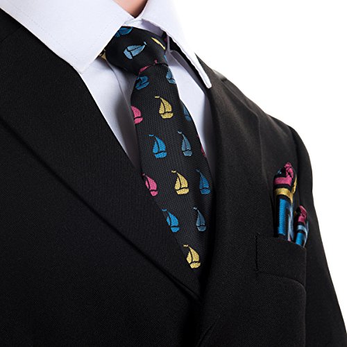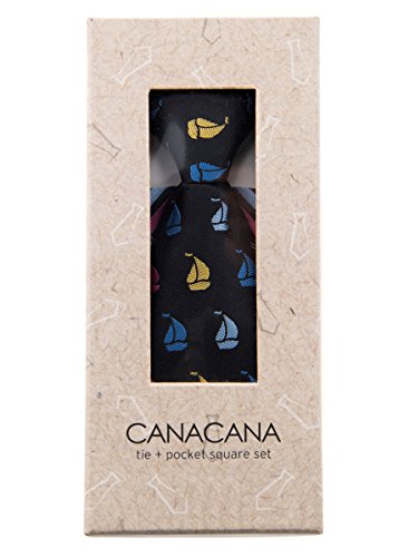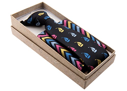 Canacana Sailboat Pre-tied Boy's Tie with Wavy Stripes Pocket Square Set