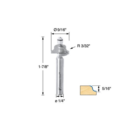 Amana Tool MR0104 Roman Ogee with Mini Ball Bearing Guide 9/16-Inch Diameter, 3/32-Inch Radius, 1/4-Inch Shank Carbide Tipped Router Bit