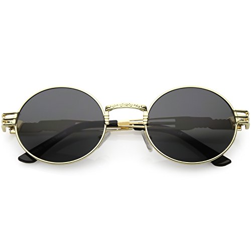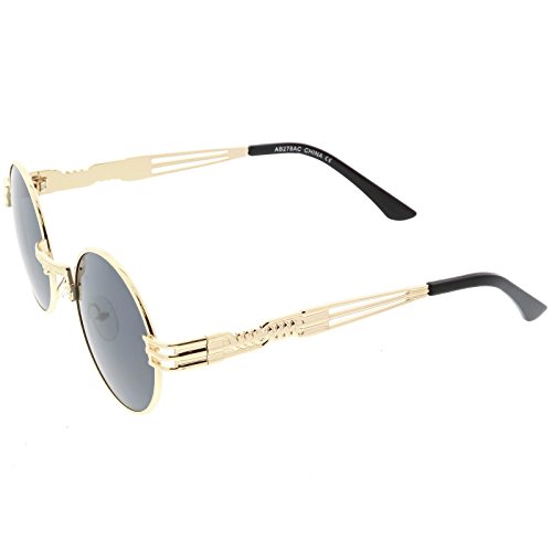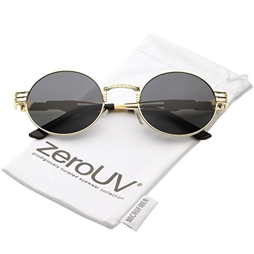 zeroUV - Unique Engraved Metal Steampunk Inspired Color Tinted Oval Sunglasses 60mm