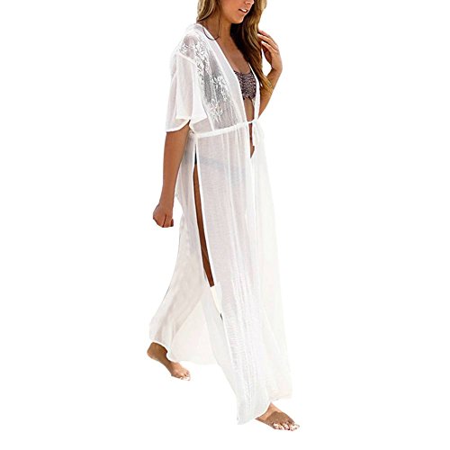 -. Title : Froomer Women Lace Chiffon Long Bikini Cover Up Beach Wear White Dress
