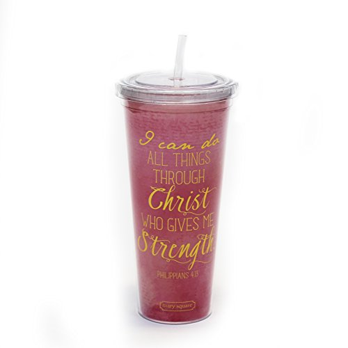 This inspirational tumbler is perfect for on the go. Fits perfectly in most car cup holders, it is made for hot and cold drinks. Fill with hot chocolate on a cold winter day or take it to the pool in the summer. This dual-walled travel mug fits perfectly in your hand with no pesky condensation when used with cold drinks and not to hot handle with warm drinks.Feature