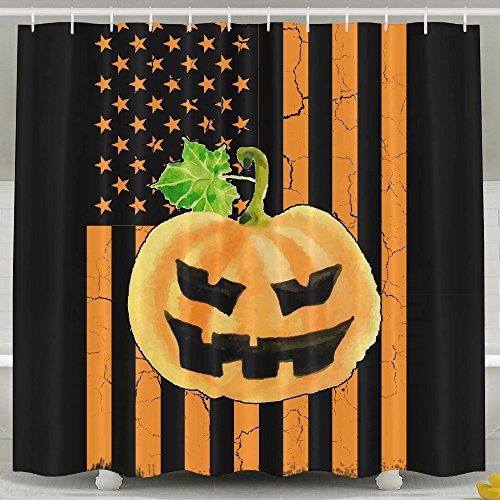 -. Title : Pumpkin And US Flag Funny Halloween Shower Curtain Fabric Bathroom Shower Curtain Set,72x60 Inch