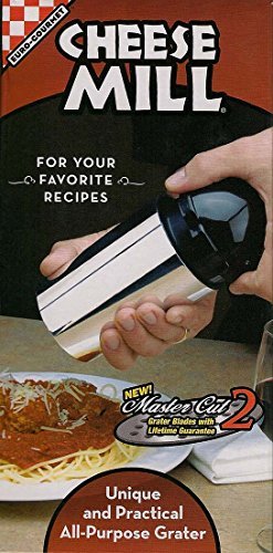 Studio : Euro-Gourmet Publisher : Euro-Gourmet Product Description The Euro-Gourmet Cheese Mill is a unique and practical all-purpose grater. Place almost any food item into the divided cup. Replace top, press and turn like a pepper mill. Use the built-in divider for evenly combining items as soft as boiled eggs or as hard as nutmeg. It enables the user to store the ungrated portion with the convenient stay fresh base plate. The perfect tool for today's kitchen. 0