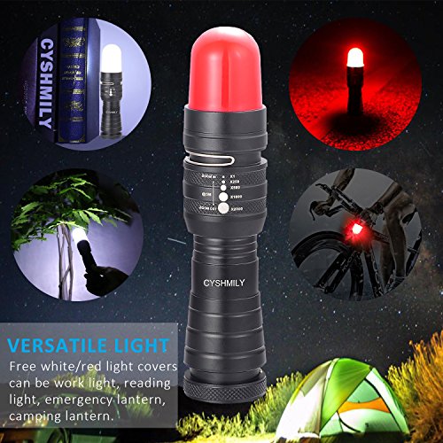 KEY FEATURES ?The torch equips with a smart charging circuit, can be charged directly with any USB charger port: mobile phone USB charger, power bank USB port, laptop USB port and other USB devices, it is portable and convenient for outdoor activity. ?Tight the red and white lantern dome accessories on the head of the flash light. The intense red light is perfect for warning light, distress signaling or roadside emergencies. The white light can be work light, book light, reading light. ?The super bright flashlight knows how to light up a room, uses a high-quality 10W 1000LM XML T6 LED as its light source, which increases longevity of the tac light as well provides an ultra-reliable light source. ?Zoom function allows for adjustable focus, intense square spotlight for long range observation can up to 600 feet, circle floodlight for large area illumination.