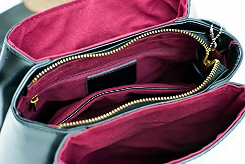 -. Feature : Practical and convenient structure: the bag's interior is specially designed with three independent pockets (one zipper pocket and two open pockets) which can fit your iPhone 6 Plus, iPad mini, umbrella, wallet/purse, notebook, and etc; also there is one exterior small side pocket for your key/small accessories; Buckle closure on top of the three main pockets; Metal zippers are solid and well made for your security. / Durable material: the bag is made of soft genuine cow split leather which provides strong tenacity, and with golden tone hardware, polyester cotton lining and precise stitching. The well designed and quality metal hardware is highly resist to rust, corrosion and tarnishing. Bottom with rivet protective which extend the usage of life. / Dimension: the whole bag (L*W*H): 9*4.3*7.9 inch; Shoulder strap: 21.65 inch; Weight: 0.6kg / The bag is with two leather shoulder straps (wide and narrow) to go with your different outfit styles, and both straps are adjustable and detachable. (Note: only one wide strap for burgundy color. ) / Versatile: Five colors are available, in black, caramel, burgundy, red and green. You can use the bag as a shoulder bag or a cross-body bag and it can go well with casual style, dating, party or travel occasions.