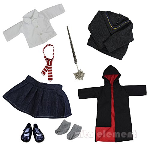 √【product details】8 pcs outfit includes: Magic wand, Shirt, Skirt, Sweater, Tie, Socks, Hogwarts-like cloak and Shoes. (doll is not included)