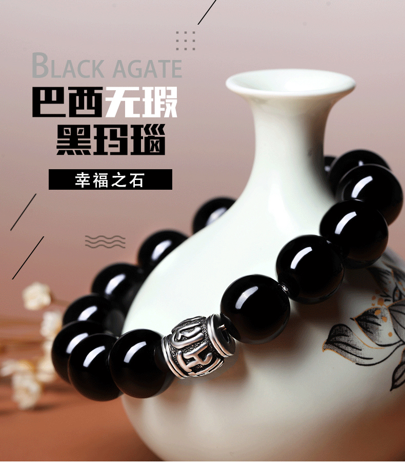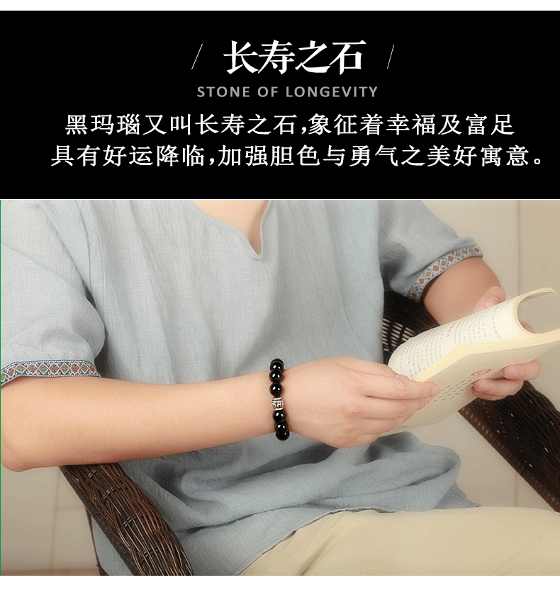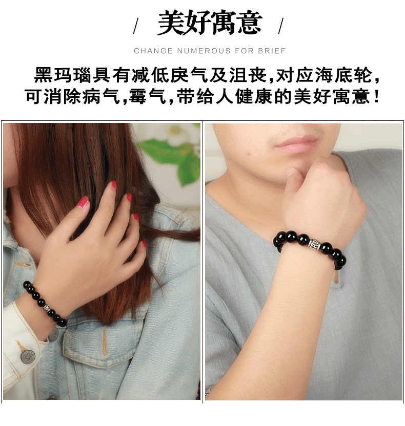 天然黑玛瑙手链男士女情侣转运珠手串黑色手珠水晶佛珠手饰品单圈