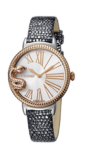 Roberto Cavalli OVERSIZED SNAKE Women's Swiss-Quartz Silver Leather Strap Watch