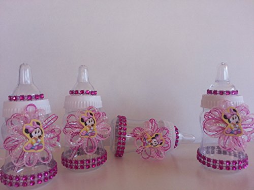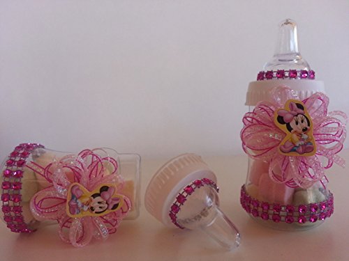 Studio : Product789 Publisher : Product789 Binding : Baby Product Product Description This Listing is for 12 Minnie Mouse Baby Bottles. Make This Your Special Gift for your guest to keep has a souvenir the bottles fit chocolate kisses, small marshmallows , candies, gummy bears, mints, you name it just so many uses. The Bottles Have A Small Hole At The Tip That Allows you to put candies or liquid for Games. Size: Approx. 4"x 1.5" Each One Of Them Is Handcraft And Made of Durable Plastic. The bottles include ribbon, Baby Minnie Mouse and rhinestones around. 0