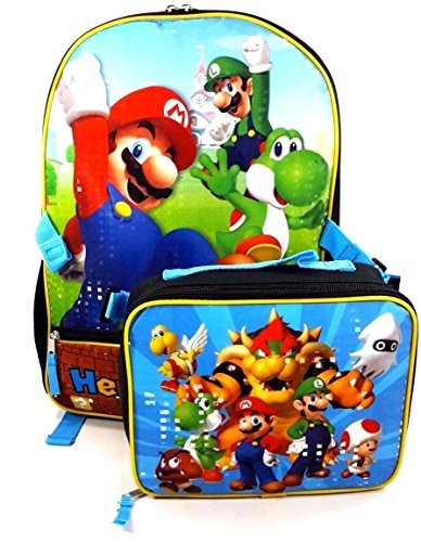 -. Title : Licensed Super Mario 16In Backpack With Matching Lunch Bag Set