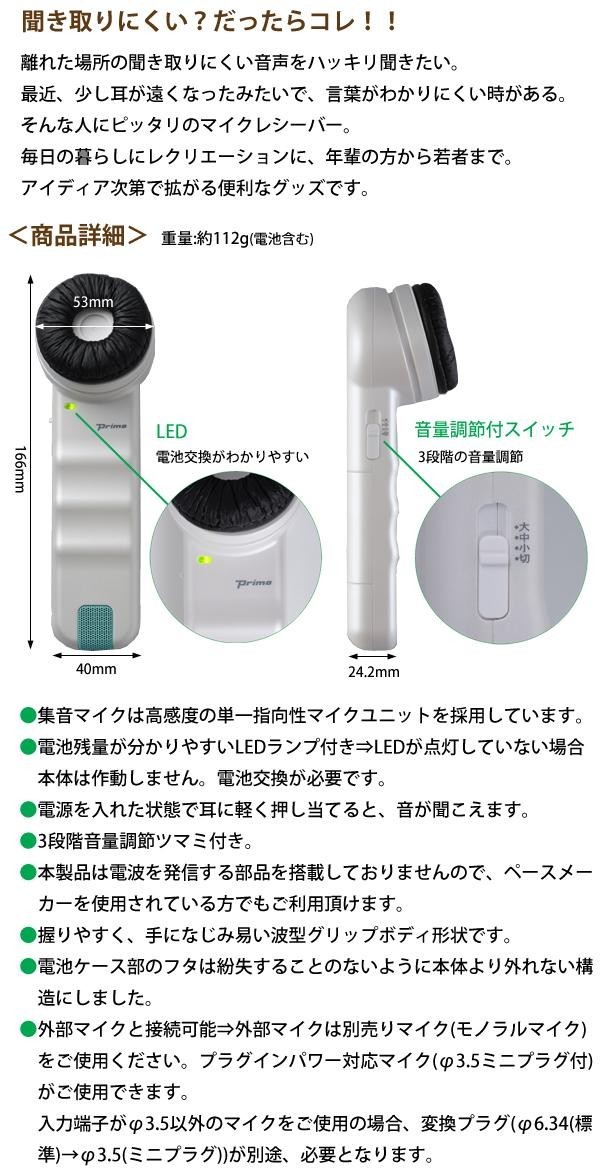 | 単純明快!耳にあてるとスイッチ「ON」!会話が聞こえづらい時によく聞こえます。握りやすい形と大きさで手にフィット!耳あてパッドのクッションで使い心地抜群♪毎日の暮らしにレクリエーションに、年輩の方から若者まで。アイデア次第で拡がる便利グッズです。 |