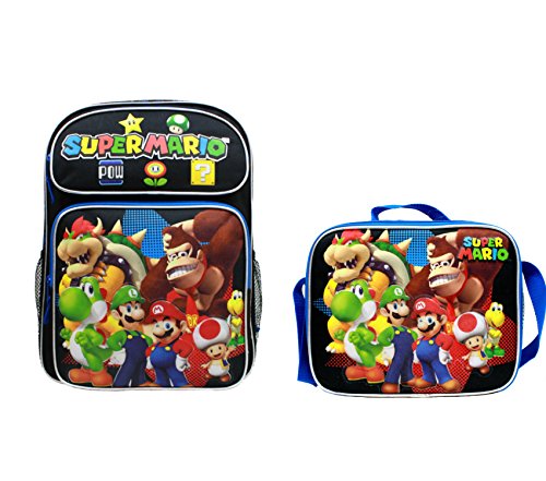-. Feature : Super Mario Nintendo Large 16" Backpack. / Dimension: 16"(H) x 12"(W) x 5"(D) inch. / Super Mario Insulated Lunch Bag. / Product Dimensions: 9.5"(W) x 8"(H) x 3.5"(D) inch. / Perfect for gift.
