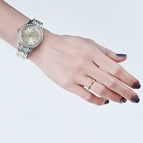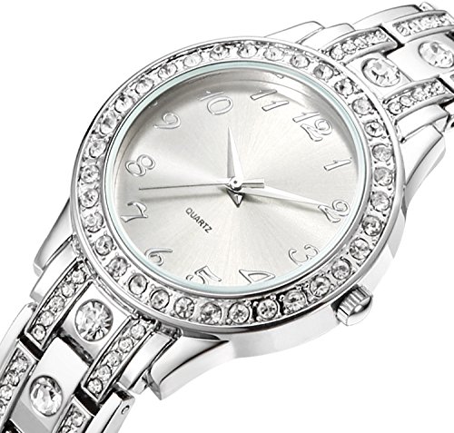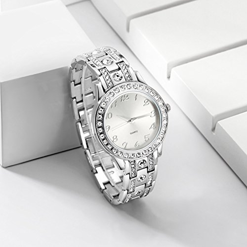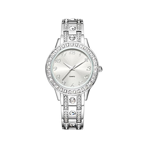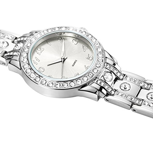 Simple but luxurious Easy to Read This watch with luxury design, Crystal-Accented Dial and Shinning big crystal on the silver bracelet band so elegant looking making you stand out!