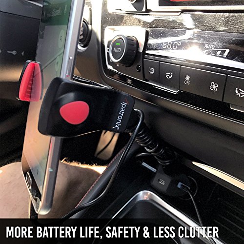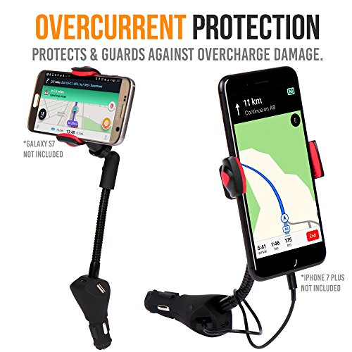 -. Feature : SAFETY & CONVENIENCE: The MX102 is an essential accessory for any vehicle to be able to navigate and charge your phone at the same time. / INTUITIVE FEATURES: 360° degree rotating adjustable holder to enable virtually any viewing angle or orientation while driving your vehicle. The clamp secures your cellphone, smartphone or other electronic devices tightly to prevent the unit from falling or moving around. Charge up to 3 electronic devices simultaneously via 3 USB charging ports. The 3rd port is USB-C, which provides 3A of rapid charging for high-speed devices. / SPECIFICATIONS: 3 USB charger ports with a maximum 3A output. Each port has a specific charging power: Left (USB-B) = 2.1A, Middle (USB-C) = 3A, Right (USB-B) = 1A). Max clamp opening of 3.9 inches and gooseneck flexible iron rod is 3.7 inches. / UNIVERSAL COMPATIBILITY: Works with all Apple iPhones: 7 Plus/7, 6S Plus/6S, 6 Plus/6, SE, 5C, 5S, 5; Samsung Galaxy S8+, S8, S7 Edge, S7, S6 Edge+, S6 Edge, S6, S5, S4, S3, Note 5, Note 4, Note 3, Note 2 and other Android smartphones. You can also charge larger devices such as iPads or tablets. / 100% SATISFACTION GUARANTEED: Not recommended for vehicles with power outlets that are positioned horizontally. We only recommend vehicles with a vertical or 45° degree angle power outlet. 2-YEAR exclusive warranty ensures you are protected for 2 years of this product and 30-DAY MONEY-BACK GUARANTEE offers peace of mind, enabling you to return the product in case you don't like your purchase for any reason.