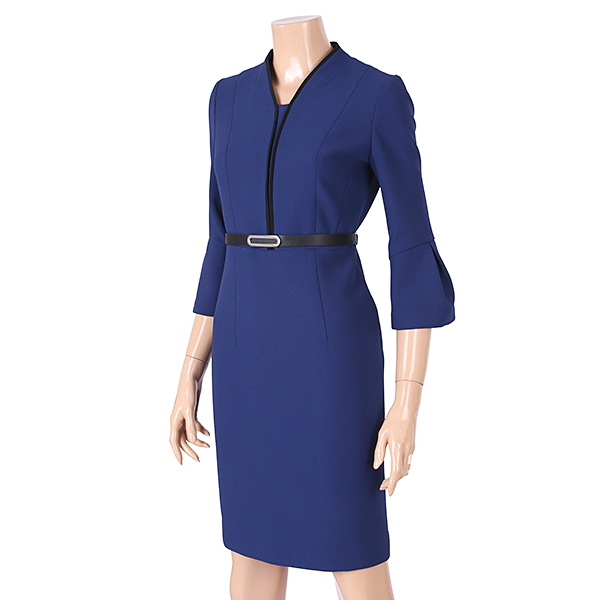 배색이 들어간 기본H 라인 원피스로 벨트셋트 상품입니다