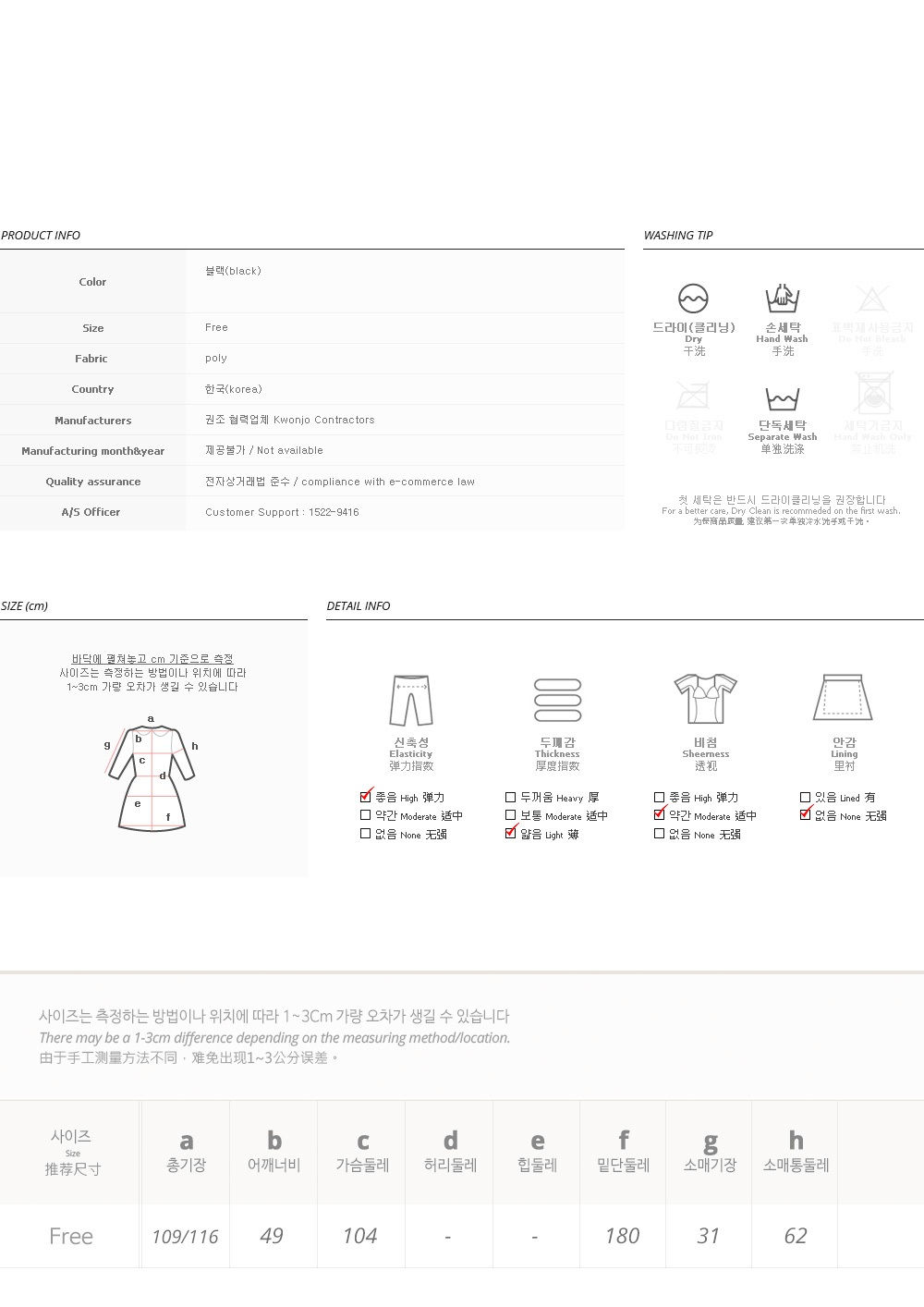 피팅 컬러와 사이즈는 블랙, Free 입니다