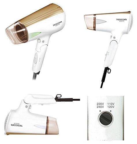 Japan Tescom BID42U Dual-Voltage Negative Ions Hair Dryer, White (Made in Japan)