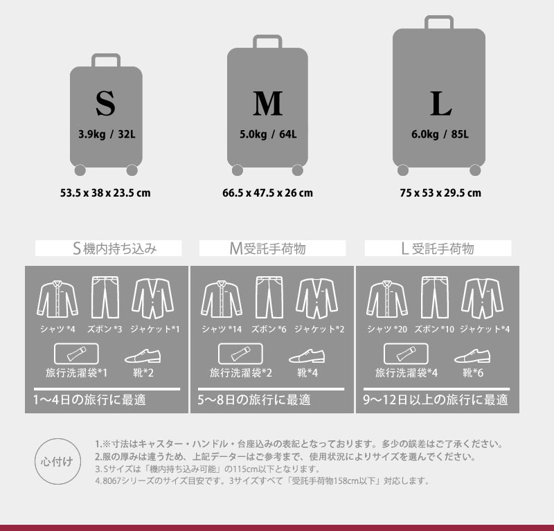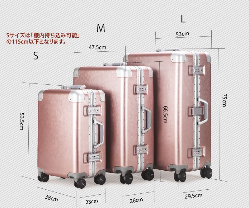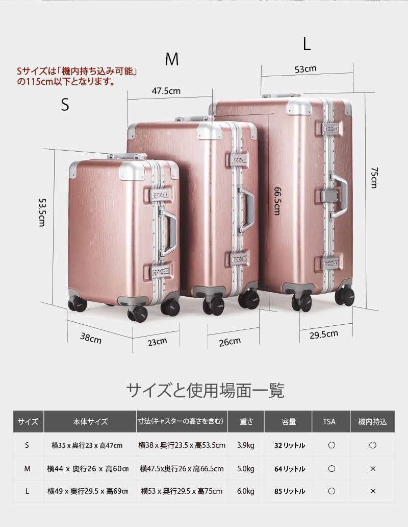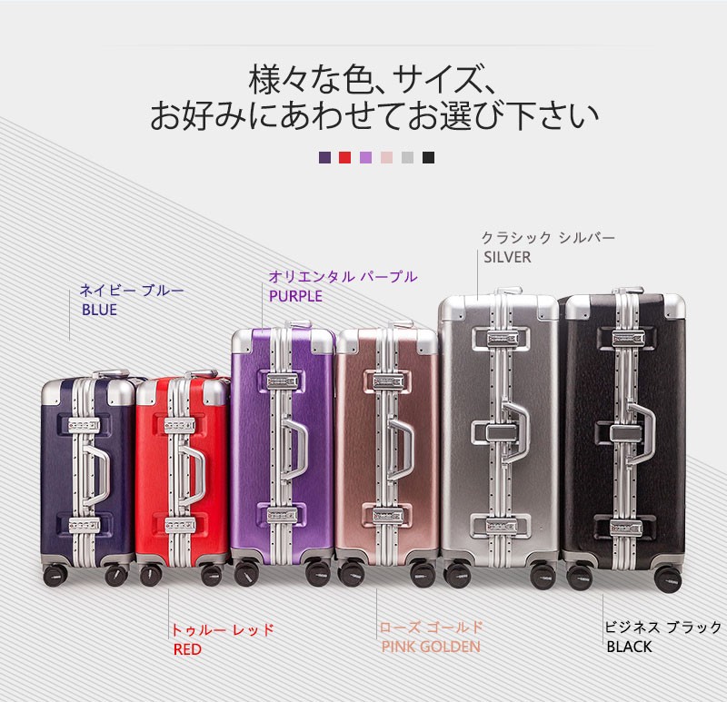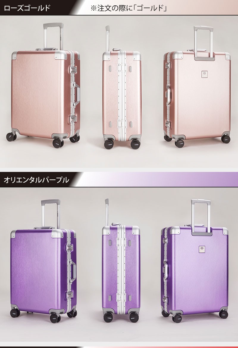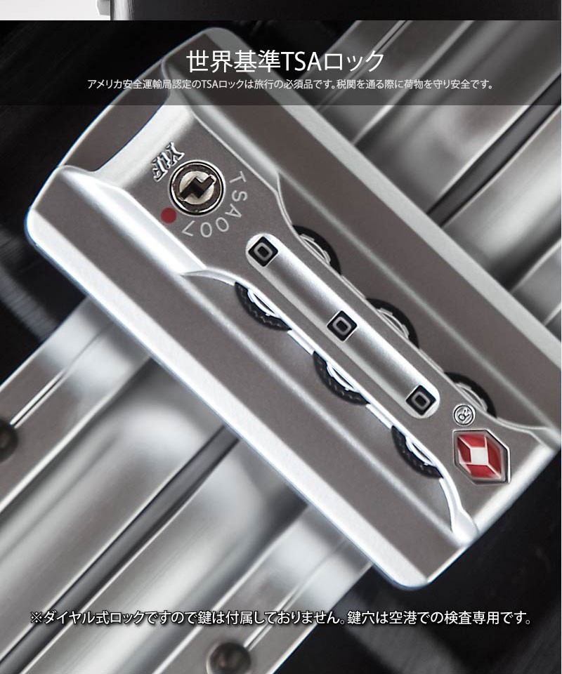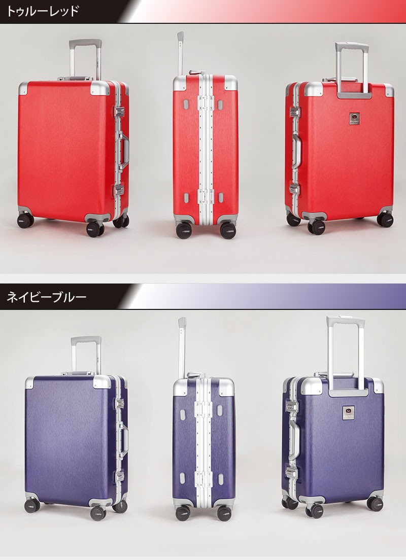 【送料無料】M サイズ●本体外寸:約縦66.5cm 横47.5cm 奥行26cm ●容量:約64L●重さ:約 5.0kg 掲載写真については、パソコンの環境により若干の色違い場合がございます。8067シリーズの単色商品は全6色、シルバー、ゴールド、黒、青、赤、紫があります。 削りだし仕上げのスーツケースボディはファッション性抜群!!収納能力は高く、落ち着くブルーの内装はXバンドは両面付き、取り外し可能な仕切りは一枚、取り外せない仕切りも一枚です。メッシュポケット付きでさらに収納便利!世界基準TSAロック搭載ですので全世界施錠した状態で荷物を預ける事が出来ます。