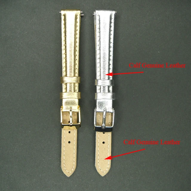 | [해외]12 미리메터 실버 송아지 정품 가죽 손목 시계 밴드 골드 시계 스트랩 벨트 여성 시계 시간 버클 봄 바 |