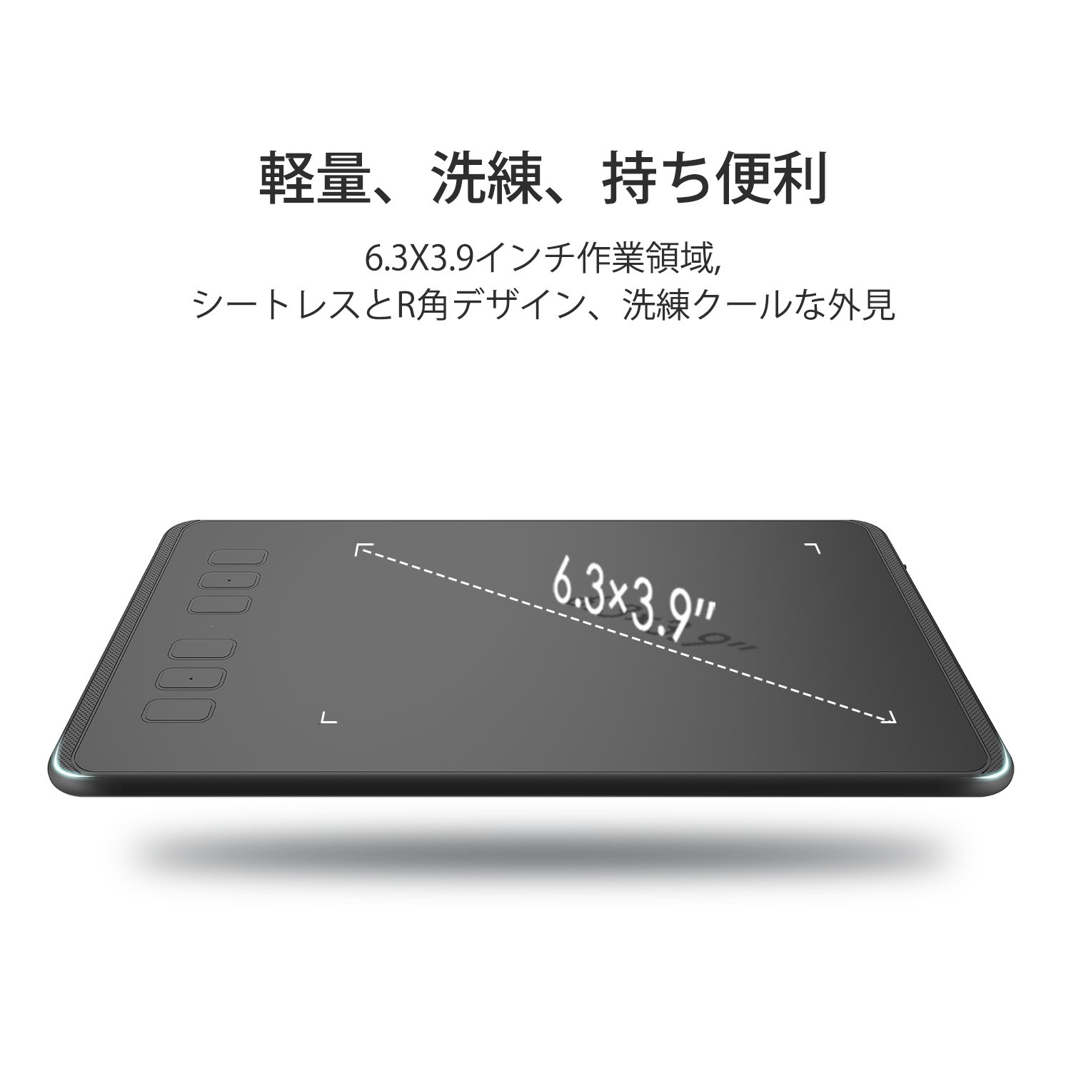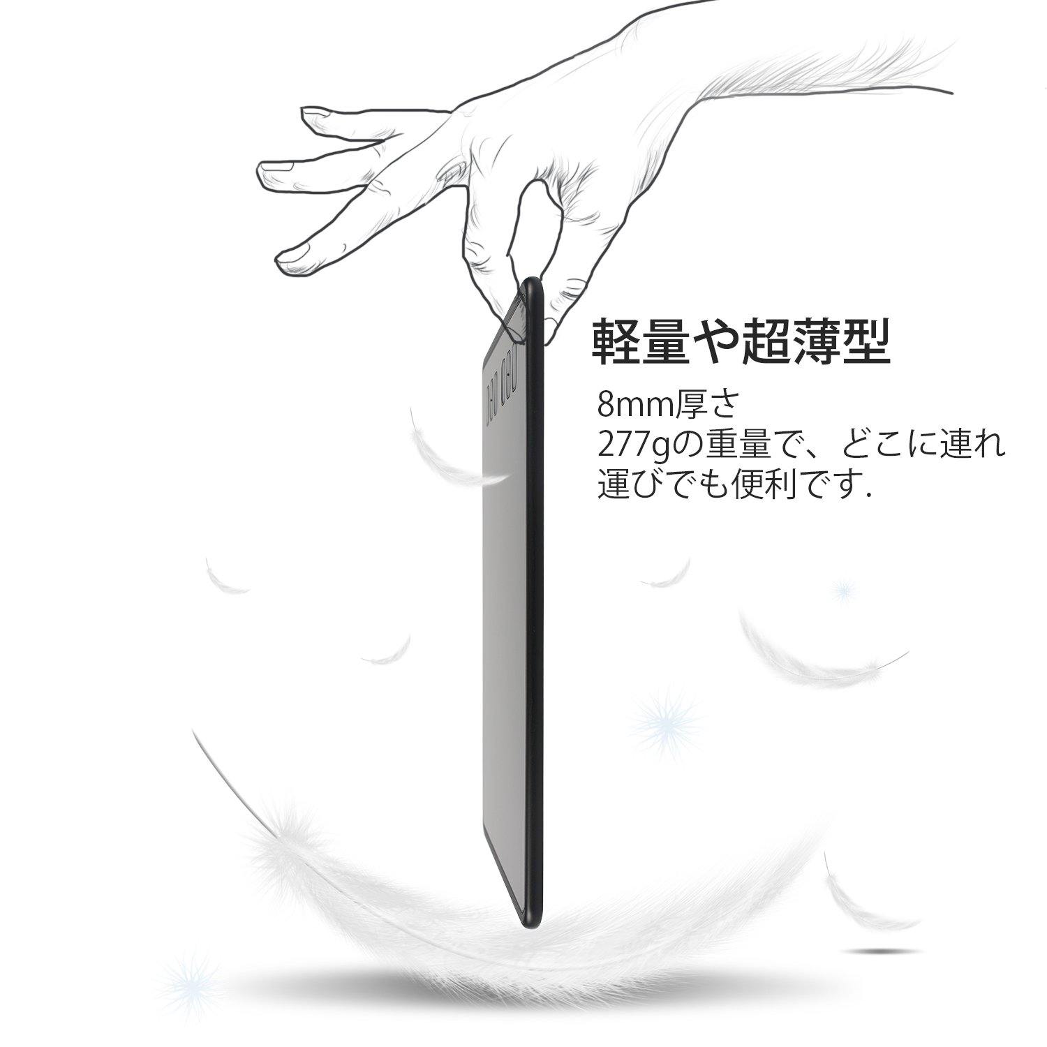 The pen tab main body is 8 mm in thickness, 277 g in weight, and it is ultra thin and lightweight.
