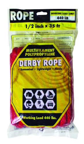 Rope King SBP-1235R Solid Braided Poly Derby Rope 1/2 inch x 35 feet - Red