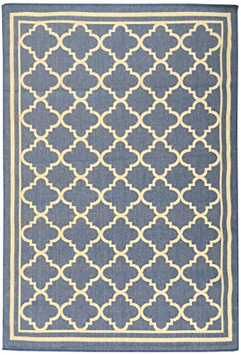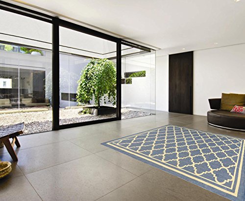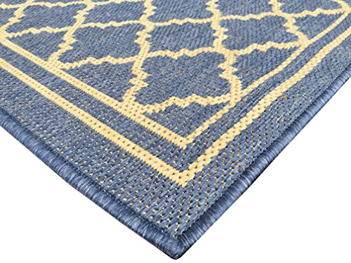 OTTOMANSON JARDIN COLLECTION NATURAL MOROCCAN TRELLIS DESIGN INDOOR/OUTDOOR JUTE BACKING AREA RV PATIO MAT RUG, 5'3" X 7'3", BLUE