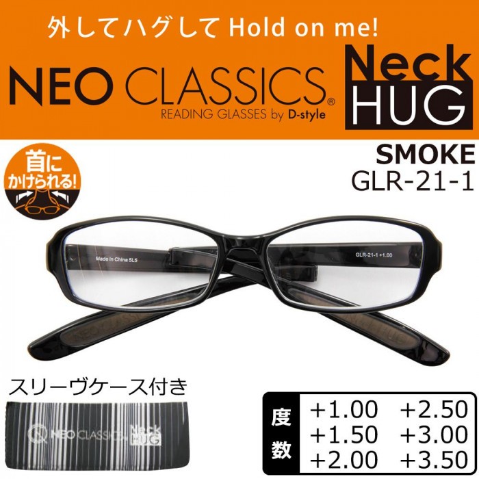 | 使用後はハグするように首にかけておけるリーディンググラス。 |