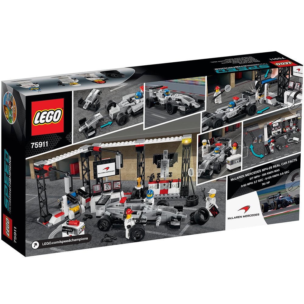 Let's prepare for the McLaren Mercedes MP4-29 race car with this LEGO ® Speed Champion Set with various functions.