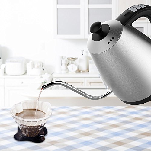THE FIRST GOOSENECK KETTLE WITH PRESET TEMPERATURE CONTROL: If you really want to enjoy a good cup of coffee, normal kettles probably aren't going to get the job done. Tired of that burned coffee taste in the morning? The accurate variable temperature presets allow you to never burn your coffee or tea leaves again. Leaving you with a gourmet cup of coffee or tea whenever you want. We are proud to be the first electric gooseneck kettle with preset temperature control on Amazon.