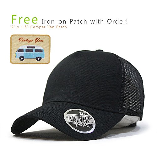 Title : Plain Cotton Twill Mesh Snapback Trucker Baseball Cap FREE Sew/Iron on Camper Patch (Black B)