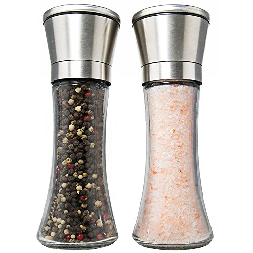 PROFESSIONAL GRADE DESIGN is ideal for grinding all varieties of salts, sea salts, and peppercorns. Using fresh spices has never been easier! This pepper and salt grinder set will allow you to grind your spices to perfection thanks to the adjustable ceramic rotor, which allows you to choose from very coarse to super fine and in between. Stainless steel and glass design makes this an attractive addition to any kitchen - great for gifts!