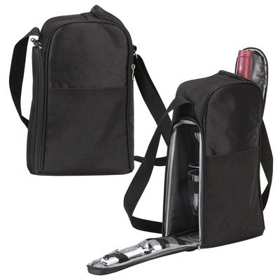 -. Feature : One side is padded and PEVA lined to keep your wine chilled / The other side features a padded zip out compartment, which includes 2 wine glasses, a bottle opener secured by elastic loops and a pair of napkins in the mesh pocket / An open pocket in front and an adjustable shoulder strap / Made of a unique mix of modern honeycomb jacquard nylon and 600D polyester