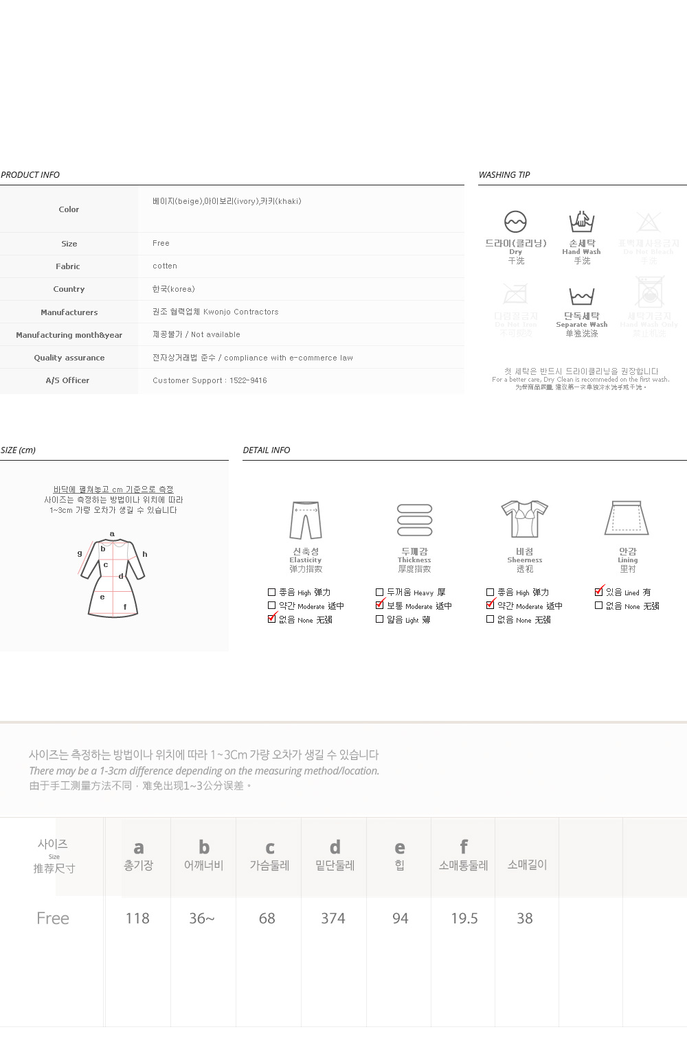 피팅 컬러와 사이즈는 베이지, Free 입니다