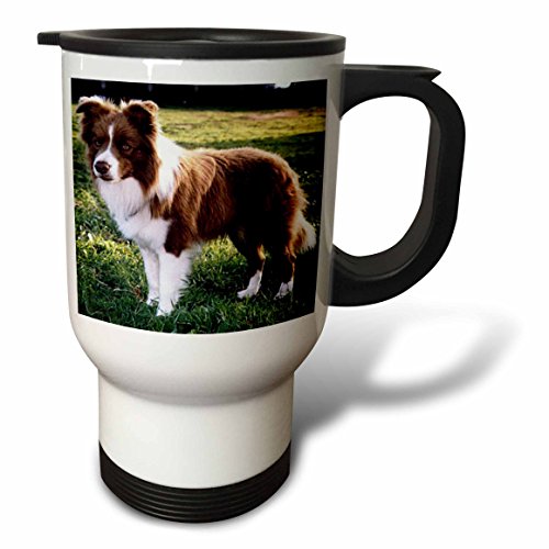 3dRose Border Collie Tan and White Travel Mug, 14-Ounce, Stainless Steel