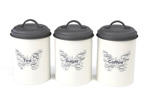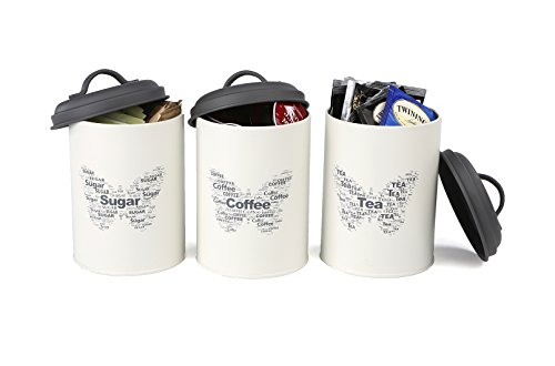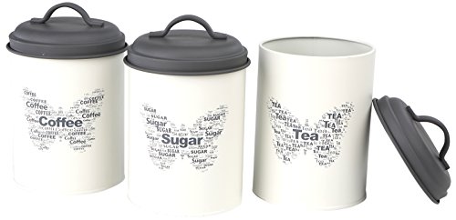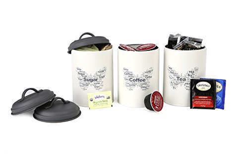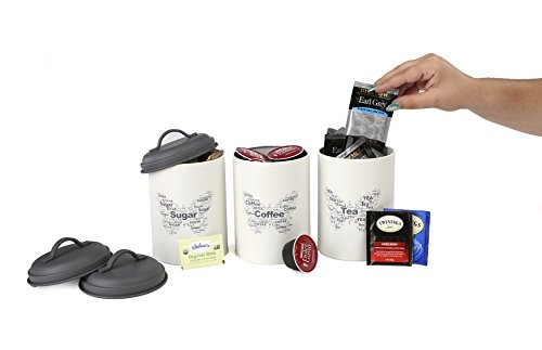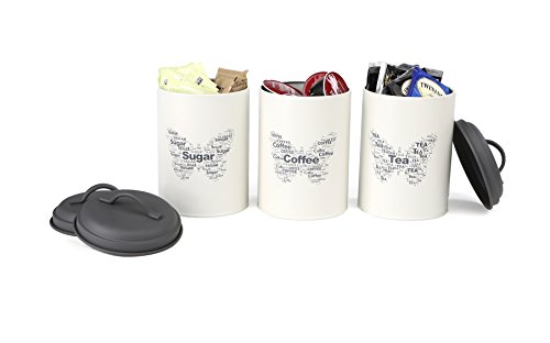 Mind Reader 3 Piece Sugar, Tea, Coffee Metal Canister Set, White