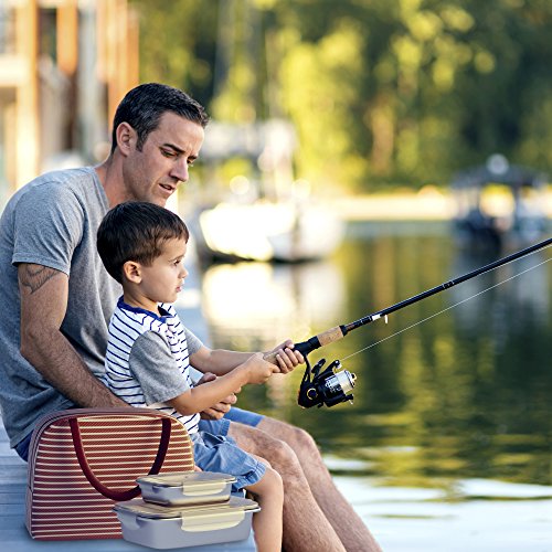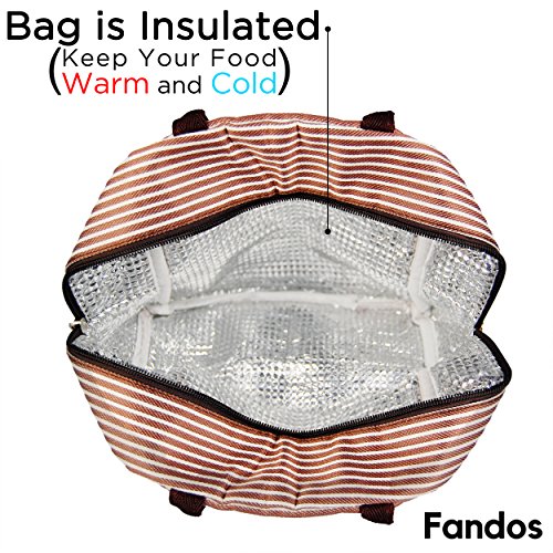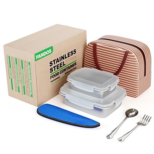 COMPLETE FOOD STORAGE CONTAINER SET - This set include an striped insulated zipper carrying case which could keep your lunch warm or cold , 1* 29oz and 1* 15oz rectangular portable lunchbox , 1*spoon 1*fork utensils with cute pouch. Don't bother to buy other accessories, this set has everything you need for your lunch.